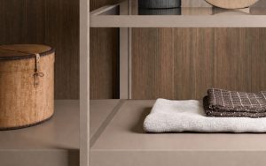 Made of 19 mm thick wood particle board panels, suitable for damp spaces indoors and with low formaldehyde emission, treated with high performance melamine resin.